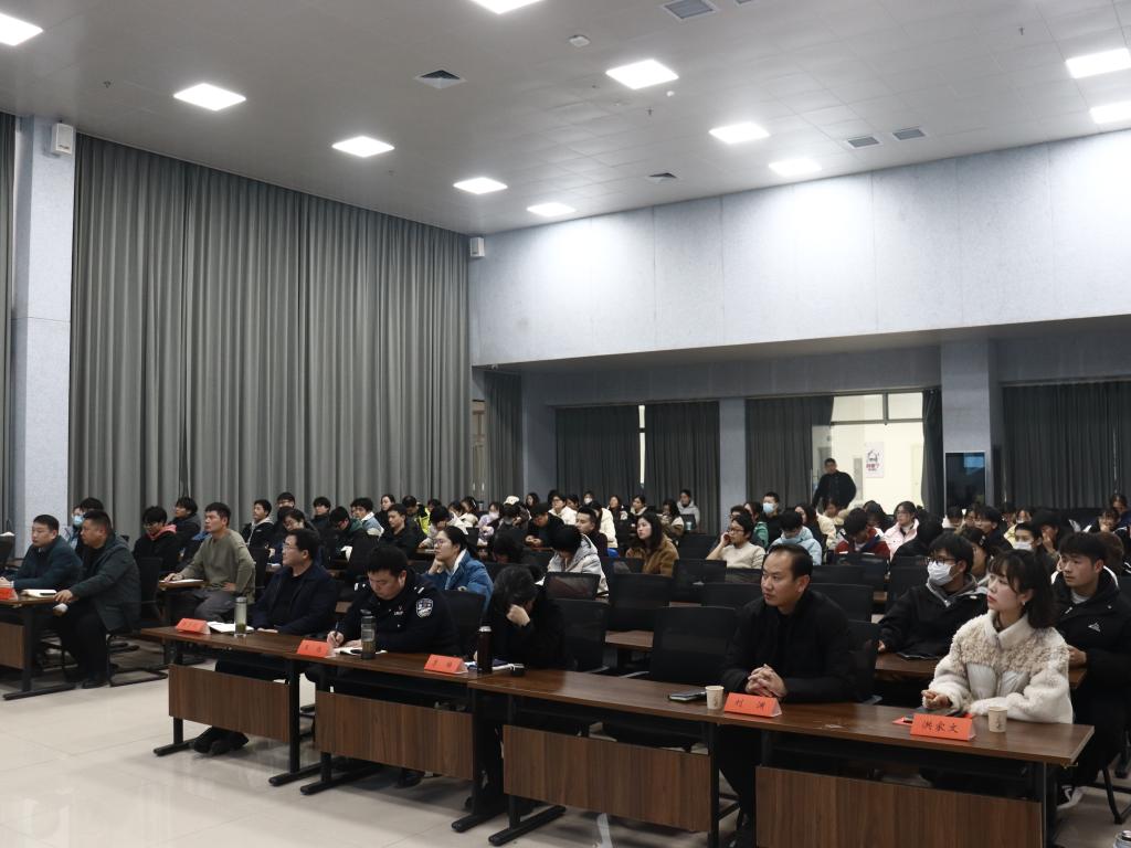 为进一步加大防范电信诈骗宣传力度,有效遏制校园电信诈骗案件的发生,普及“两卡”犯罪知识,12月29日,beat365在线平台官网联合中国移动信阳分公司特邀信阳市公安局反诈中心在学术交流中心开展反诈宣传进校园专题活动。信阳市公安局反诈中心副支队长王杨、市移动公司网络信息安全主任李梅一行及beat365在线平台官网保卫处、学生处相关领导同近百余名师生参加此次活动。