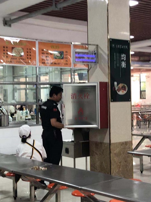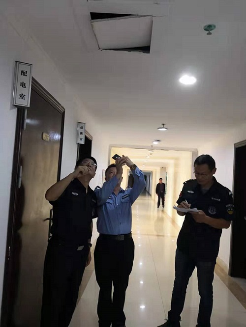 经过深入的排查,发现一号教学楼有个别消防箱内存在消防栓没水、消防水带丢失等情况,对此情况张处长要求要及时联系相关部门做好消防栓通水,尽快购置部分消防水带,消除安全隐患。