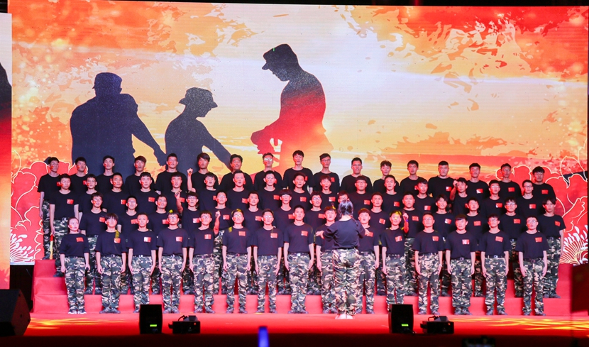 和着铿锵有力的节奏,在翻卷的红旗中,祝伟洋老师带来了经典爱国主义流行歌曲《中国人》。舞动的红旗猎猎生风,精湛的武术虎虎生威,充分展示出中华民族凝聚了五千年生生不息的民族血脉,强烈的民族自豪感在每个人心中油然升起。