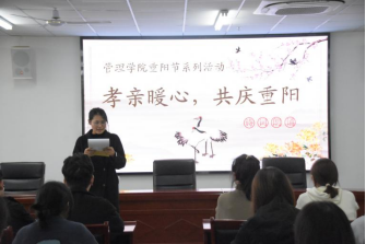 为弘扬中华民族尊老敬老的传统美德,引导师生感悟亲情、珍惜当下,管理学院于10月29日在双创中心楼408会议室举办重阳节系列活动。活动由王中颖主持,学院学生和教师代表参加。