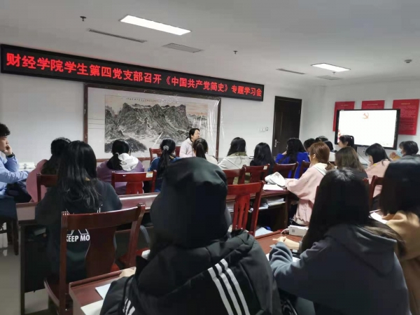 4月8日,财经学院学生第四党支部在党员活动室组织召开《中国共产党简史》专题学习会,全体学生党员及部分积极分子参加此次专题学习。学生支部书记李春月主持会议。