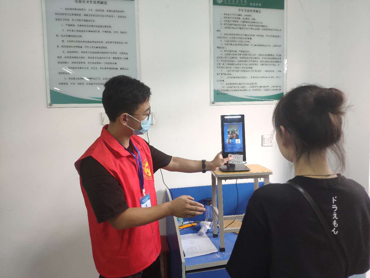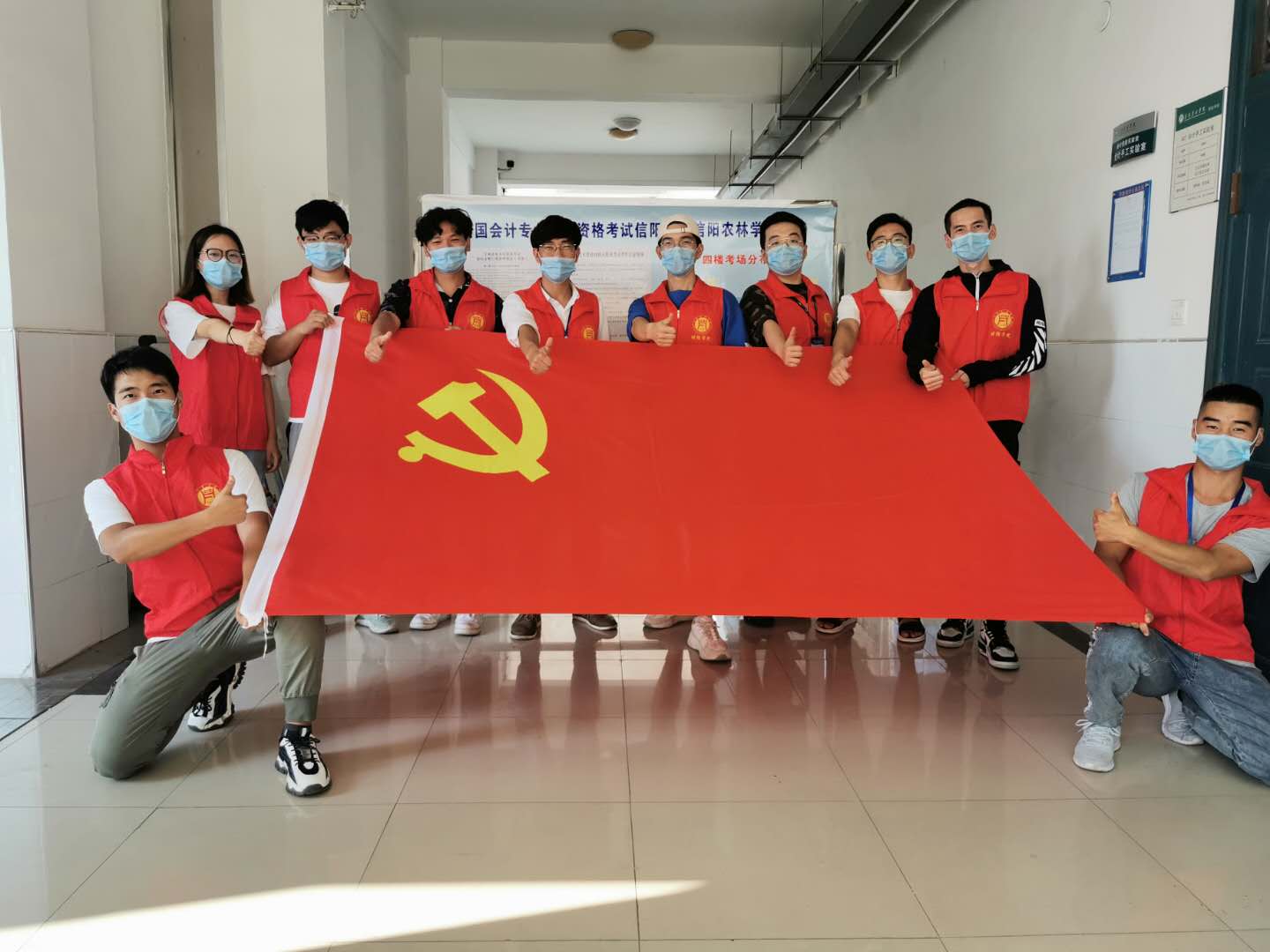 活动中,志愿者们身着红背心,引导考生进入考场,提醒考生戴好口罩,督促考生做好考试中间的个人防护,挨个检查体温,大家齐心协力,分工合作共保考试秩序安定有序。志愿者们不怕辛苦,考后深入考区帮助清理白色垃圾,进楼道和考场清扫考生遗留下的矿泉水瓶和烟头,协助消杀,把疫情防控的具体措施落实在实际行动中。志愿者们表示:“我们是财务相关专业的党员学生,良好的考试环境需要大家共同营造,作为党员应该志愿服务在保障疫情防控的第一线,广大考生对志愿服务也十分理解和支持,我们将来也要参加会计考试,今天我为考生服务,将来会有更多人为我们服务。”