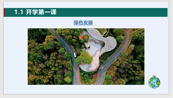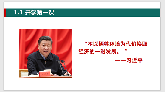 2.郭南克老师在《环境资源会计》开学第一课中教会学生担起生态保护的担子。安吉山峦叠嶂,一片林富了一方百姓;塞罕坝林海莽莽,从“一棵树”到百万亩“郁郁葱葱”;兰考田丰粮茂,“焦桐”拱卫风吹麦浪;潘阳湖波光滟潋,湖光山色候鸟天堂。今日之中国,“绿色发展”正在扎实推进,“绿水青山就是金山银山”的发展理念在实践中取得了丰硕的成果。袁隆平院士曾有言:“人就像一粒种子,要做一粒好的种子。”这句话是对年轻人的谆谆教诲。面对生态环境问题,我们要承担起生态保护的担子,在生活学习中践行低碳环保的生活理念,节约用水、绿色出行、少使用一次性餐具等等。坚持从自身做起,扮靓我们的绿色中国。