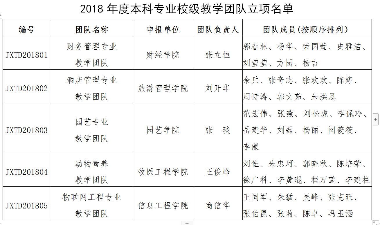 信农教〔2018〕5号本科专业教学团队建设项目立项的通知