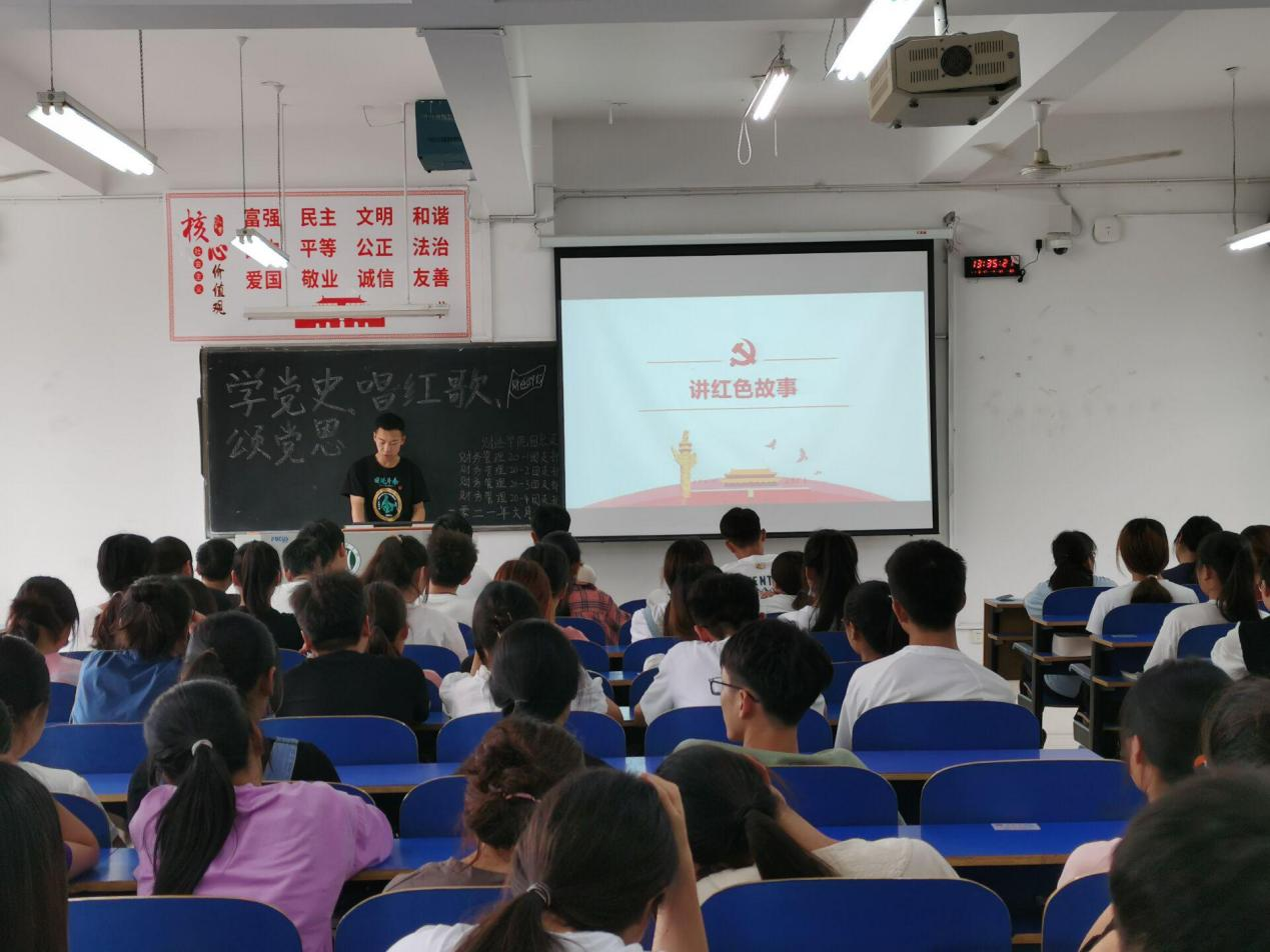 各班班团活动主要分为三个阶段开展:第一阶段,主讲人介绍“学党史、唱红歌、颂党恩”的主要内容;第二阶段,班级学生代表宣讲党在中国革命、社会主义建设、改革开放等各个历史时期的典型事例;第三阶段,引导同学们全面了解和正确认识党的光辉历史、伟大成就、宝贵经验、光荣传统和优良作风,共同合唱《没有共产党就没有新中国》、《祖国不会忘记》等红色歌曲。
