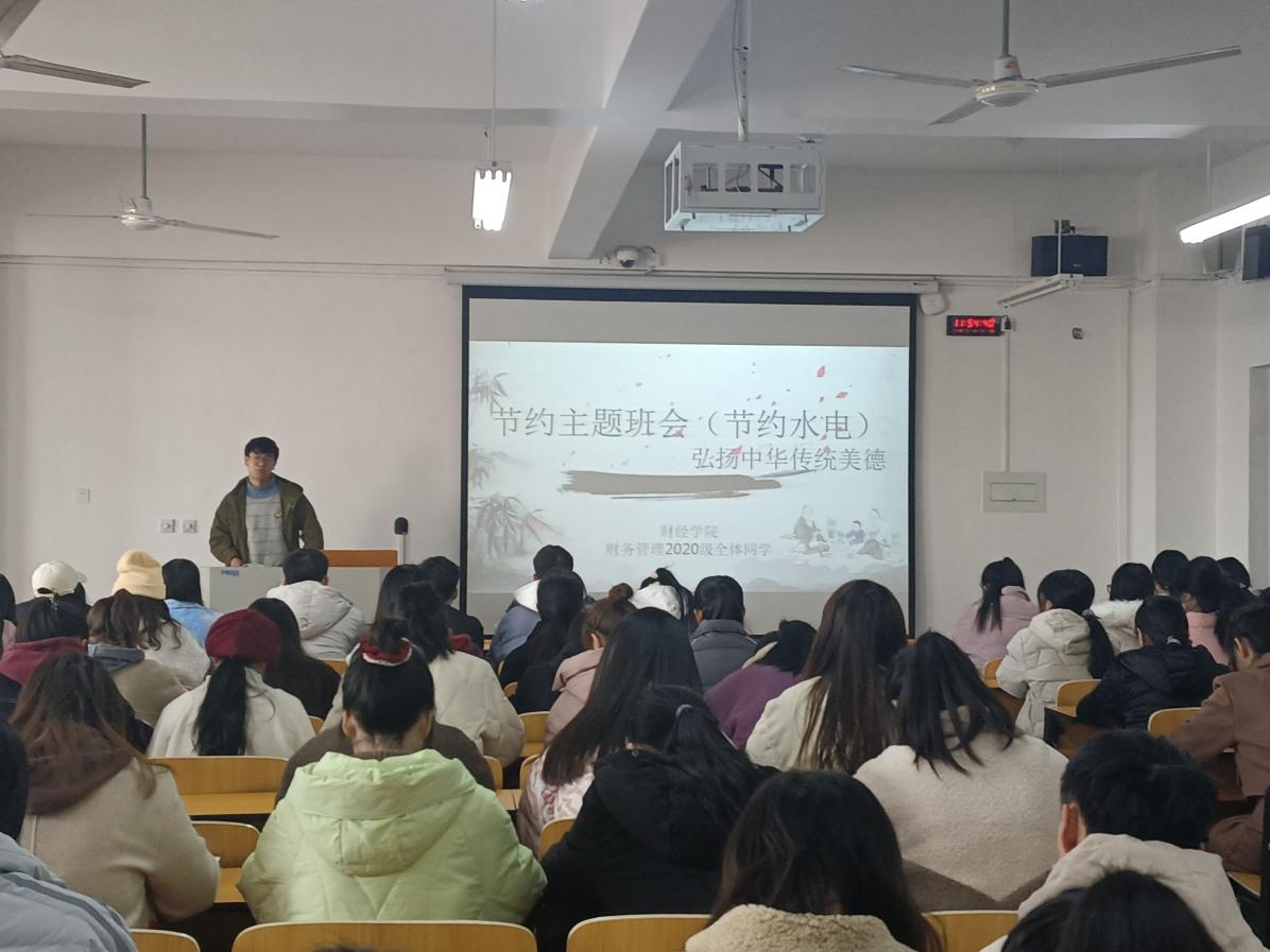 为进一步提高同学们节水节电意识,鼓励同学们养成勤俭节约的好习惯,营造文明和谐的校园氛围,财经学院各班于2021年12月13日-17日期间开展“节水节电”主题班会。