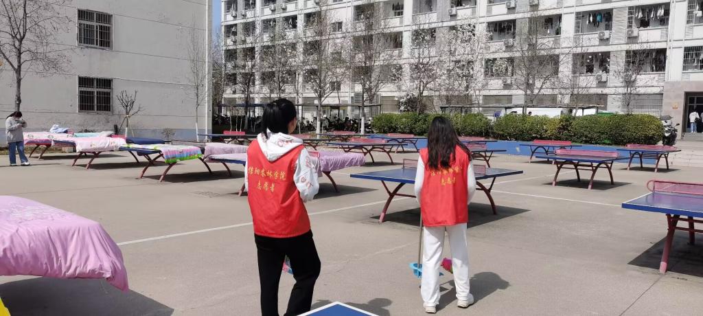 顶着烈日炎炎的骄阳,参加志愿服务的同学怀揣着一颗炽热的心开始进行校园的清洁美化工作,劳动过程中,每位志愿者都能认真的清扫校园内的枯枝落叶、杂草杂物,以及花坛里的烟头纸屑,摆放整理校园内共享单车。