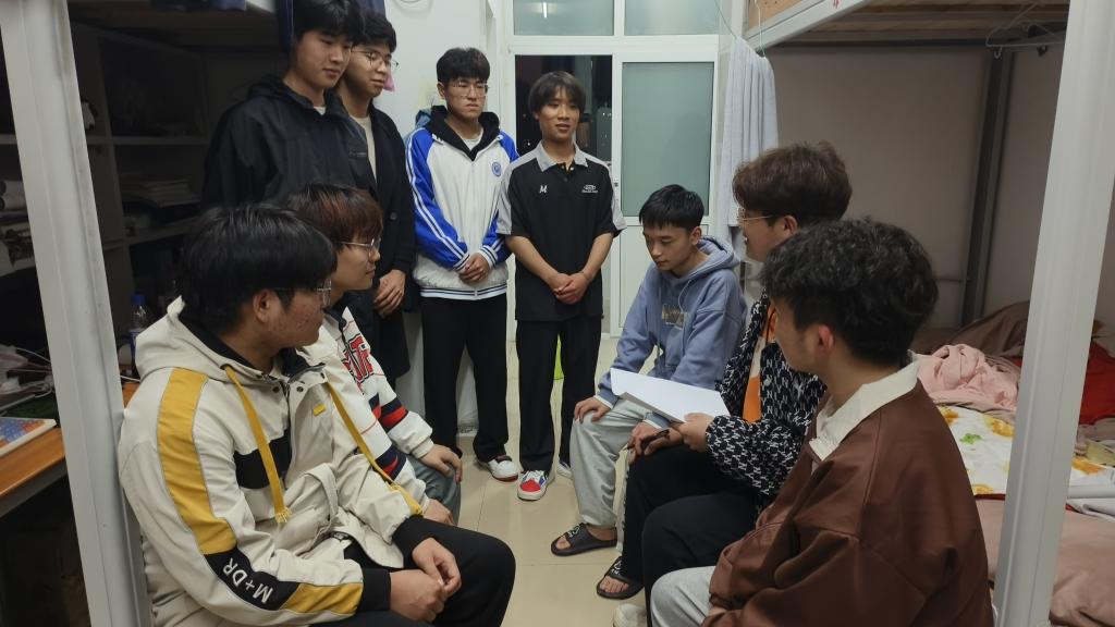 同学们主要对插排乱扯,宿舍养宠物,违规使用大功率电器、易燃易爆物品、宿舍环境整洁等情况进行自查,督促大家严格遵守宿舍规章,确保人员按时归寝,增强自我管理能力。同时,他们耐心向大家宣传宿舍安全知识,努力提升同学们的安全意识。