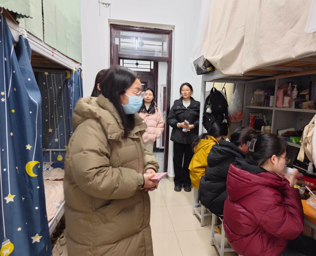 新学期伊始,为深入了解学生的返校情况,及时了解学生的思想动态、心理状态,进一步做好学生关怀服务及公寓安全保障工作,2月17日,管理学院党委副书记刘璐璐及辅导员老师们深入学生宿舍,走访慰问返校学生,并为他们送去新学期的问候和祝福。