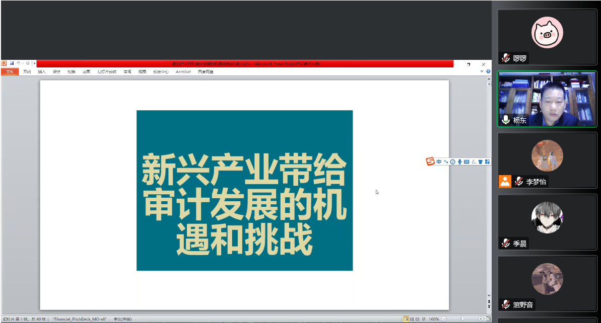 为持续推进“科研氛围营造年”系列活动,2022年11月3日晚,财经学院邀请北京理工大学珠海学院杨东副教授作题目为“新兴产业带给审计发展的机遇与挑战”的学术报告,本次报告由审计学教研室李梦怡老师主持,全院师生在线听取报告。