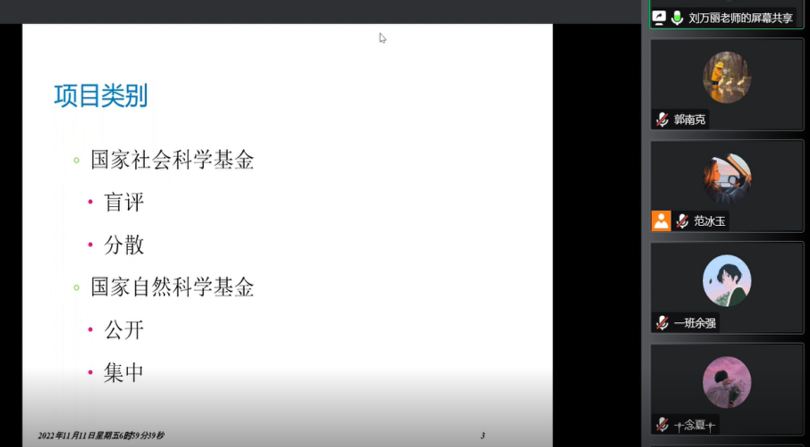 刘万丽博士结合大会计学科的专业特点与自身科研经历,围绕项目类别、科研方法和科研项目申报经验三个方面具体展开。会议开始,刘博士对各类科研项目的评审流程与会计学科项目中标情况进行介绍,鼓励青年教师要不断打磨科研本子,勇于尝试申请科研项目。随后,指出科研方法的四个要点,明确项目研究要聚焦学科前沿、要采用主流前沿方法、要以解决国家经济发展中的重大现实问题为目标、要体现“国情特征”。同时,刘博士就如何把握学科前沿和方法前沿给出具体建议,引导青年教师在开会、研讨交流、参加培训、看文献、写文章的循环中不断梳理总结,实现创新点的挖掘。学术讨论环节,刘博士针对青年教师提出的项目申报具体问题依次进行详细解答。