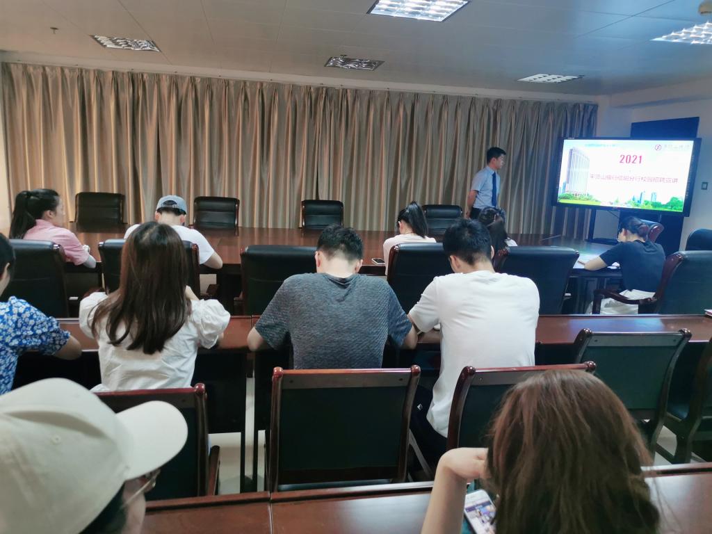 为切实做好2021届毕业生就业工作,拓宽毕业生就业渠道,提高毕业生就业质量,6月4日,财经学院与平顶山银行信阳分行的校园招聘宣讲会在综合办公楼第六会议室举行。财经学院党总支书记朱长明、就业专员李春月与2021届部分毕业生参加本次招聘宣讲会。