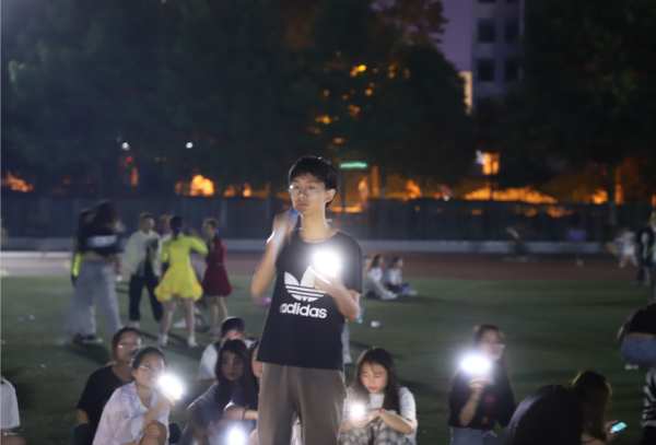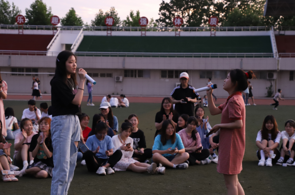 活动伊始,两名学生代表集体合唱《追梦赤子心》,使现场气氛达到高潮,接下来开展“报数”与“放音乐传话筒”游戏,吸引同学们参与活动,增加同学们的活动参与感,最后各班派代表自由演唱歌曲,一首首动人的歌曲响彻操场,整场活动高潮迭起,场面热闹,同学们轮番上阵,各显神通,与观众积极互动,给大家带来一场视听盛宴。