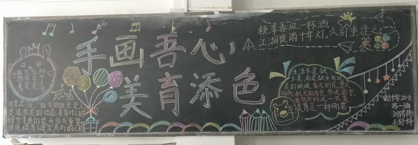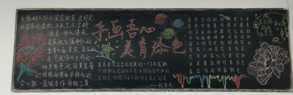 此次“手画吾心,美育添色”黑板报比赛的开展,展示我院学生的艺术才华,培养了同学们艺术鉴赏能力,营造了我院美育建设的良好氛围,展示了我院坚持立德树人,扎根时代生活,遵循美育特点,弘扬美育精神,把美的种子播撒在学生心中。(财经学院 荣翊贝)