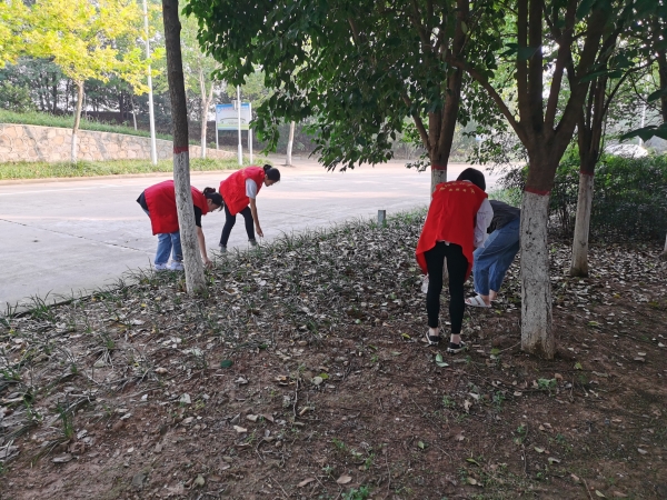 保持环境卫生,做文明创建实践者。为促进环境和文明相结合,提升同学们的文明素养,财经学院志愿者积极开展卫生清洁志愿服务活动,在老师的带领下,同学们分工合作,对校园内的卫生死角进行“地毯式”清理,他们坚守岗位、认真负责,身体力行的倡导同学们爱护环境,不乱丢垃圾、烟头,提升文明素养,从点滴做起,从小事做起。