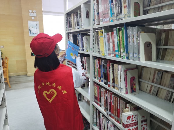 营造学习氛围,做文明创建推动者。我院志愿者积极参与图书馆志愿服务活动,协助图书馆的工作人员做好日常咨询、引导登记、整理书籍等一系列工作,倡导文明阅读,规范不文明行为,营造安静、有序的读书环境,引导读者提高文明素质,注重文明举止,共同建设文明和谐的图书馆,增强创建文明城市的软实力和生动力。