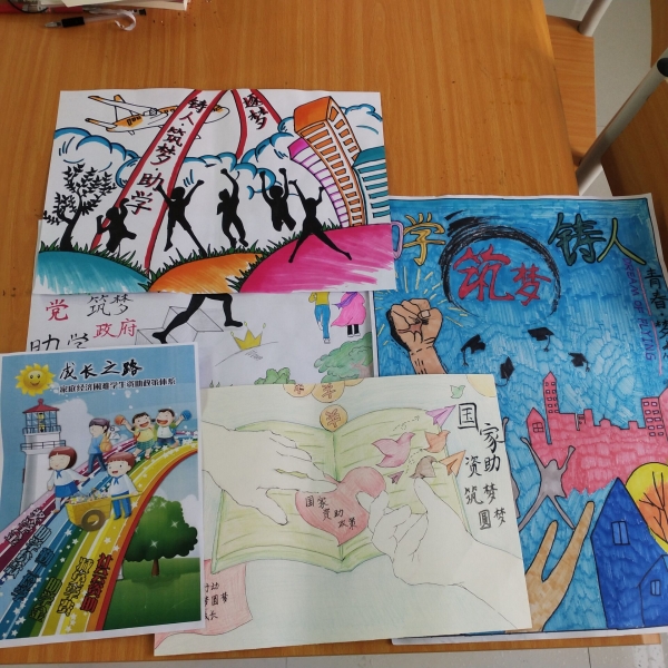 本次宣传画评比活动面向财经学院全体学生,同学们积极参与、踊跃报名、活动持续一个礼拜时间。宣传画评比活动围绕“助学、筑梦、铸人”这六个字为主题,绘画内容内涵丰富、笔触自然、色彩饱满、对比强烈,给人一种视觉上的冲击。这些作品集思想性、艺术性、观赏性与一体,导向正确、各具特色,兼具文学性和艺术性。展现了国家的帮扶政策对家乡、家庭和个人带来的深刻变化。活动秉承公平、公正和严谨的态度,经过层层筛选和组织讨论,筛选出5张优秀宣传画将推至学校进行评比。
