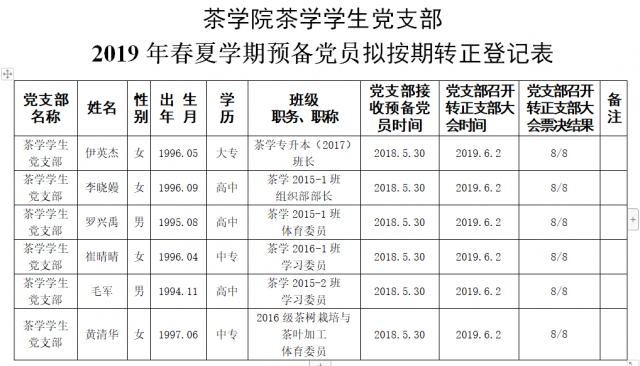 根据《关于实行“双推双评三全程”进一步规范发展党员工作的实施办法》要求,现将伊英杰等6名预备党员转正的基本情况公示如下,请于监督。