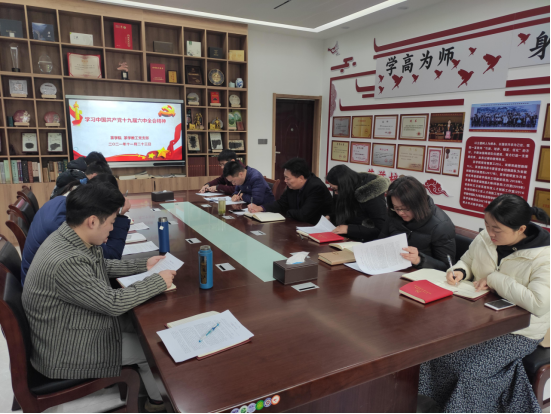 会上,黄双杰首先明确了本次会议的主题,带领全体成员通读了《中国共产党第十九届中央委员会第六次全体会议公报》。接着,黄松副书记针对大家的学习情况进行了点评和指导,强调学习目的要明确,内容重形式,不可浅尝辄止,浮于表面,全体教师要认真学习、深刻领会十九届六中全会精神内涵,将学习精神转化为能力,并付诸实际行动。最后,黄松副书记针对学习不到位的地方进行了补充和重点串讲,对我党历史上通过的两次决议的背景和意义、十九届六中全会通过决议的重要性和历史地位、党的百年奋斗重大成就和历史经验的“三个需要”、“五大历史意义”、十大历史经验等进行了深刻剖析会后,大家纷纷表示,通过黄书记的指导,大家对党的十九届六中全会精神有了更深刻的领悟。(黄双杰,罗金蕾