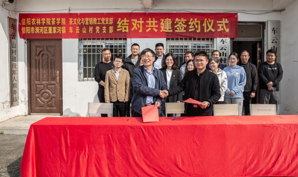为进一步发挥党建引领作用,构建“支部共建、资源共享、优势互补、协调发展”的联动机制。3月12日上午,茶学院茶文化与营销教工党支部与信阳市浉河区董家河镇车云山村党支部在车云山村举行支部结对共建签约仪式。