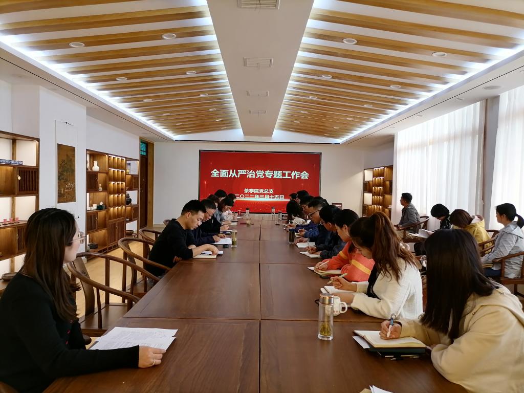 3月15日下午,茶学院召开2022年全面从严治党工作会,学院领导班子成员和全体教职工参会,会议由茶学院院长、党总支书记郭桂义主持。