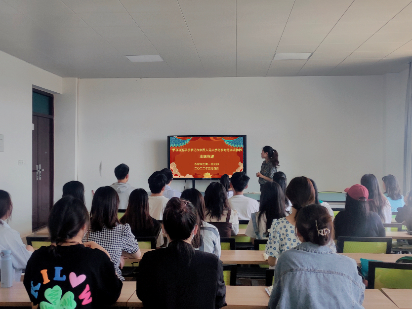 5月4日中午,茶学院茶学学生第一党支部书记丁岚在1C307为支部学生党员和入党积极分子讲学习习近平总书记在中国人民大学考察时的讲话精神主题党课。