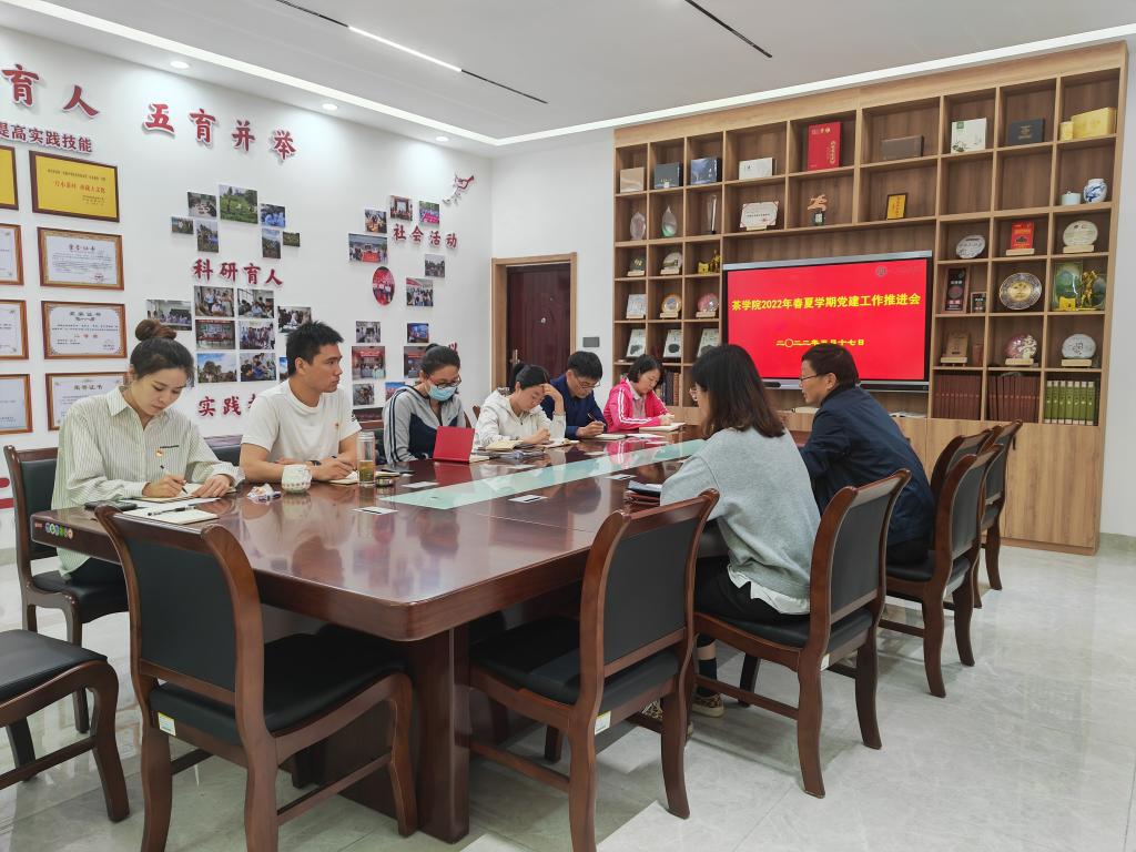 为深入推进学院基层党建工作质量,着力有效促进学院党建工作和业务工作深入融合,5月17日茶学院于科技楼1C102召开2022年春夏学期党建工作推进会。茶学院党总支书记、院长郭桂义,学院4个党支部的书记、支委参加会议。会议由茶学院党总支副书记朱建梅主持。