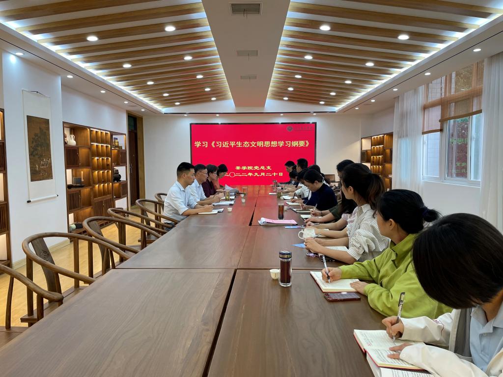 为深入学习贯彻习近平新时代中国特色社会主义思想,按照校党委2022年工作部署,9月20日下午,茶学院党总支于1C201组织学习贯彻《习近平生态文明思想学习纲要》。茶学院党总支书记、院长郭桂义、副院长孙慕芳、陈义及全院教职工参会。会议由党总支副书记朱建梅主持。