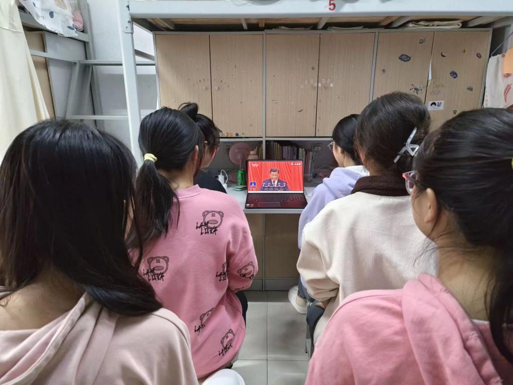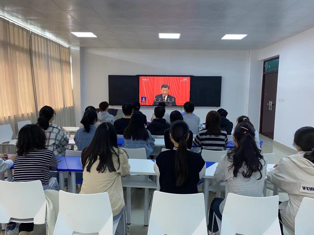 10月16日上午,中国共产党第二十次全国代表大会在北京人民大会堂隆重开幕,习近平总书记代表第十九届中央委员会向大会作报告。茶学院全体师生通过多种方式,认真收听收看了中国共产党第二十次全国代表大会开幕会,聆听报告全部内容,教师和部分学生党员代表在1C201收看,学生党员在1C307收看,同学们在教室和宿舍集体收看。