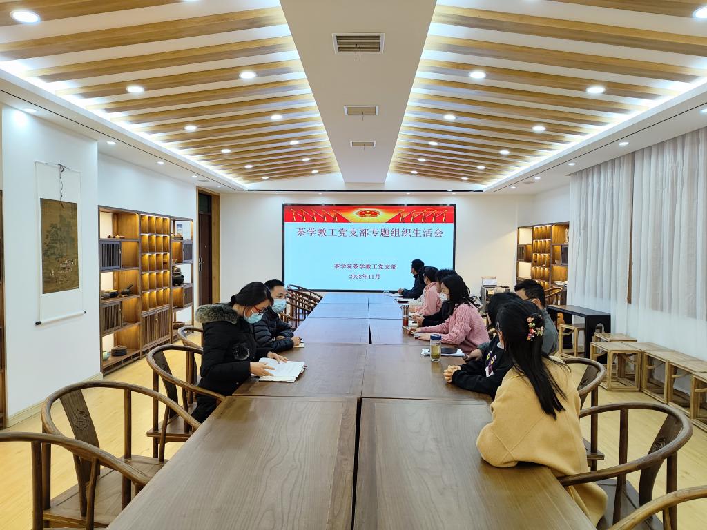 2022年11月22日下午,茶学院茶学教工党支部在茶学院1C202召开“学习红旗渠精神 庚续红色血脉”为主题的专题组织生活会。会议由支部书记黄双杰主持,支部全体党员到会,茶学院副院长孙慕芳和陈义同志以普通党员身份参加。