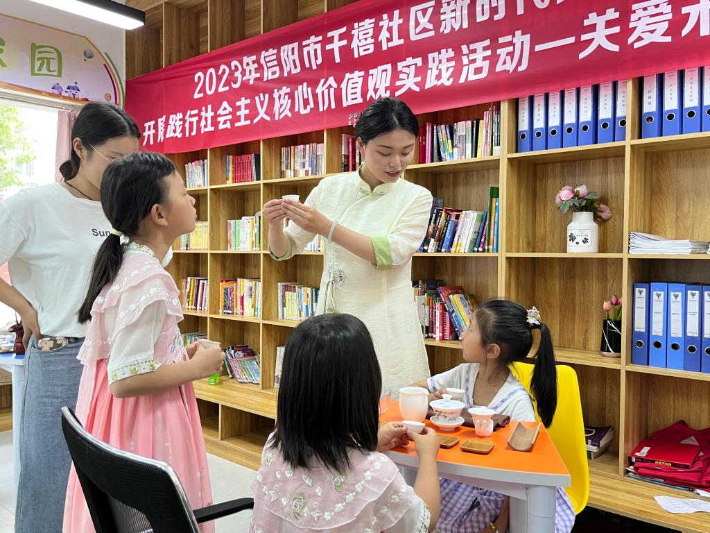 茶学学生第二党支部赴千禧社区开展“茶艺进社区,茶香润童心”少儿茶艺教习活动