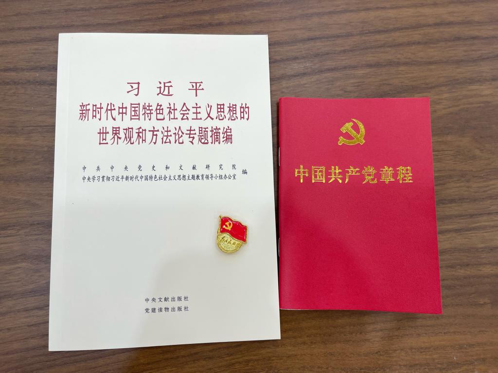 第二项,支部书记为每位毕业生党员发放一枚党徽、一本党章、一本党建读物,强化每一位党员的党员意识。