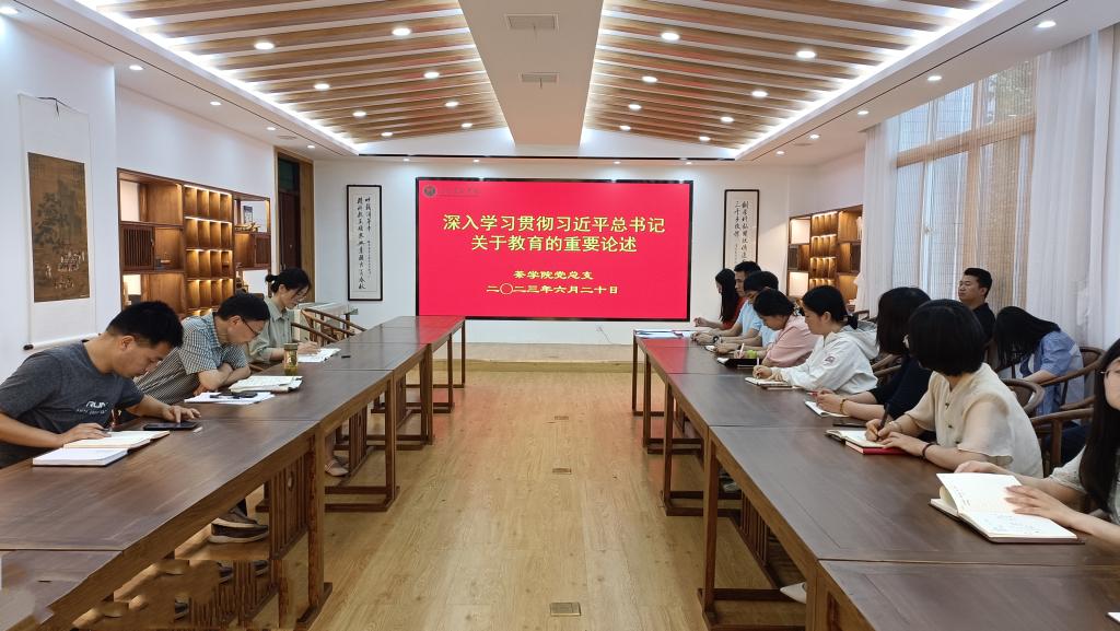 为深入学习贯彻主题教育、党的二十大精神和习近平总书记关于严明党的纪律和规矩的重要论述,全面加强党的纪律建设,教育引导全院党员干部学纪、明纪、守纪。6月20日下午,茶学院党总支于科技楼1C201组织深入学习贯彻习近平总书记关于教育的重要论述。茶学院党总支书记、院长郭桂义、副院长陈义、党总支副书记、纪检委员朱建梅及全体教师参会。会议由郭桂义主持。