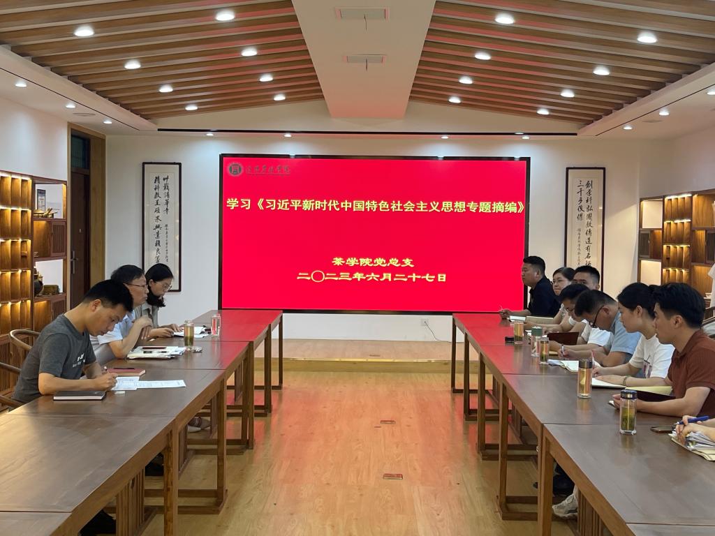627日,按照中央、省委和学校学习贯彻习近平新时代中国特色社会主义思想主题教育整体部署,茶学院党总支在科技楼1C201召开中心组(扩大)理论学习会,集中学习习近平新时代中国特色社会主义思想专题摘编》。会议由茶学院党总支书记、院长郭桂义主持,全体教师参加。