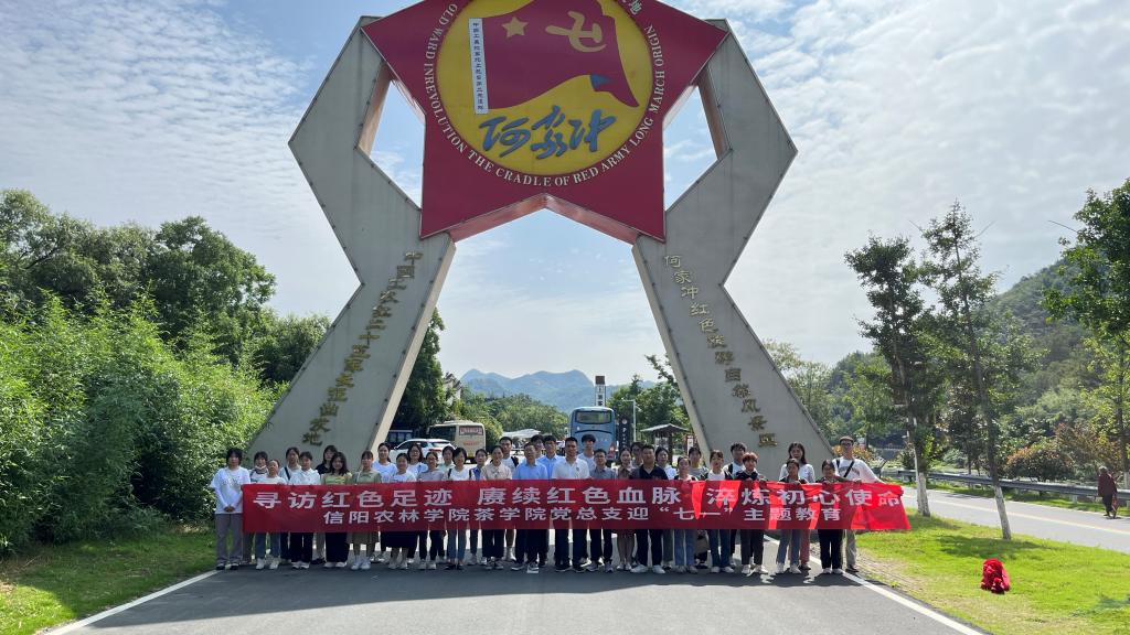 为庆祝中国共产党成立102周年,推动学习贯彻习近平新时代中国特色社会主义思想主题教育走深走实,6月30日,茶学院党总支师生党员在茶学院院长、党总支书记郭桂义的带领下,走进罗山县何家冲红色教育基地——红二十五军的长征出发地,开展“寻访红色足迹 赓续红色血脉 淬炼初心使命”迎“七一”主题教育。