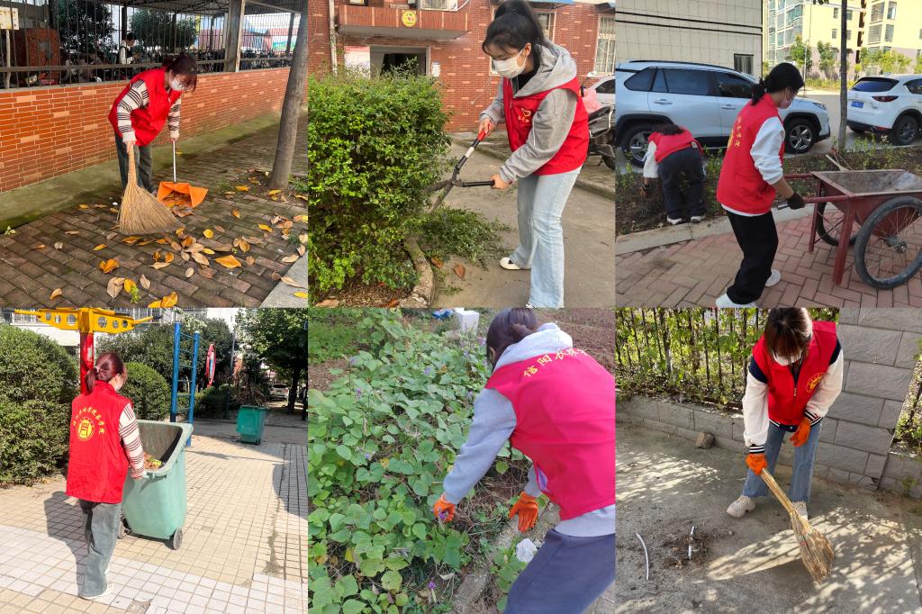 活动第二项,支部同学们协助社区开展“清洁家园”环境卫生整治活动。梁玉洁老师带队,将同学们进行分组,分别前往千禧社区A、B区开展卫生清扫工作。活动中,志愿者们发扬不怕脏、不怕累的奉献精神,全面清扫了小区路面垃圾和楼道杂物,对小区内楼梯、过道、柱子、宣传橱窗周围等张贴的小广告和顽固胶渍进行了铲除清理,集中清理了绿化带中的堆积物、大型垃圾,彻底清除了小区内的顽固垃圾,有效提升了小区整体卫生水平,改善了居民居住环境。