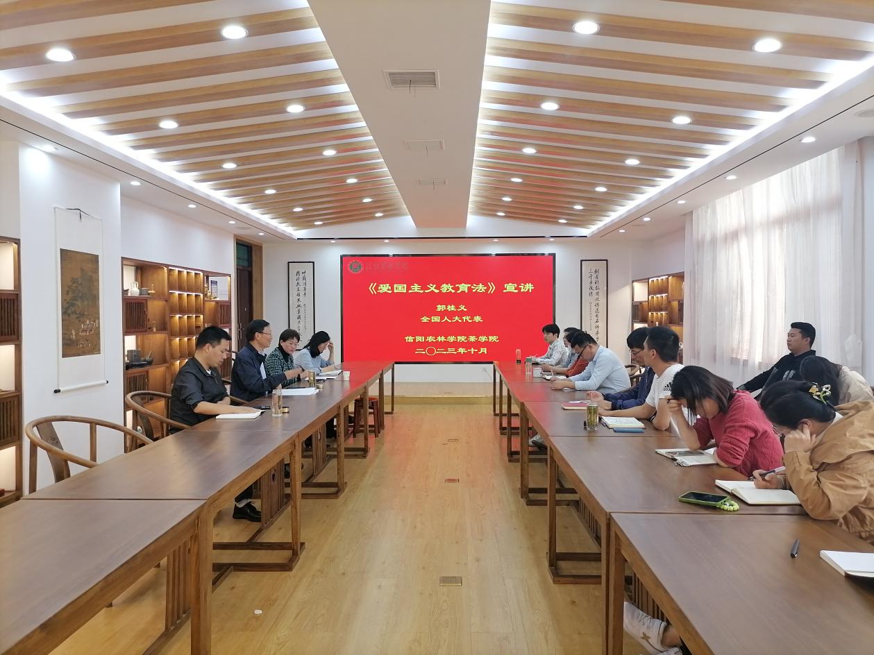 为践行立德树人根本任务,进一步强化党员干部、师生爱国教育,继承和发扬爱国主义传统,引导师生坚定不移听党话、跟党走,深入培育和践行社会主义核心价值观。10月26日,列席第十四届全国人民代表大会常务委员会第六次会议的全国人大代表、茶学院院长郭桂义教授向全院教师宣讲《中华人民共和国爱国主义教育法》。