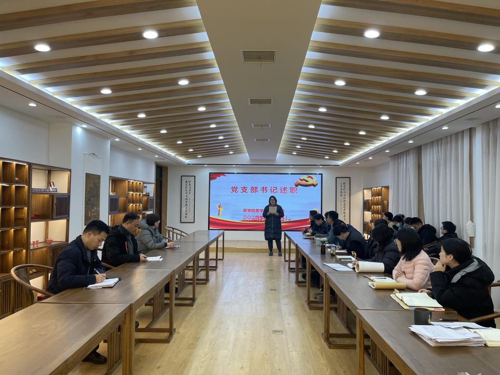 1月16日下午,茶学院党总支在科技楼1C201召开党支部书记抓党建工作述职汇报会,会议由茶学院党总支书记王鹏主持,茶学院党总支委员、各党支部书记、支部委员及党员和教师代表参加了本次汇报会。