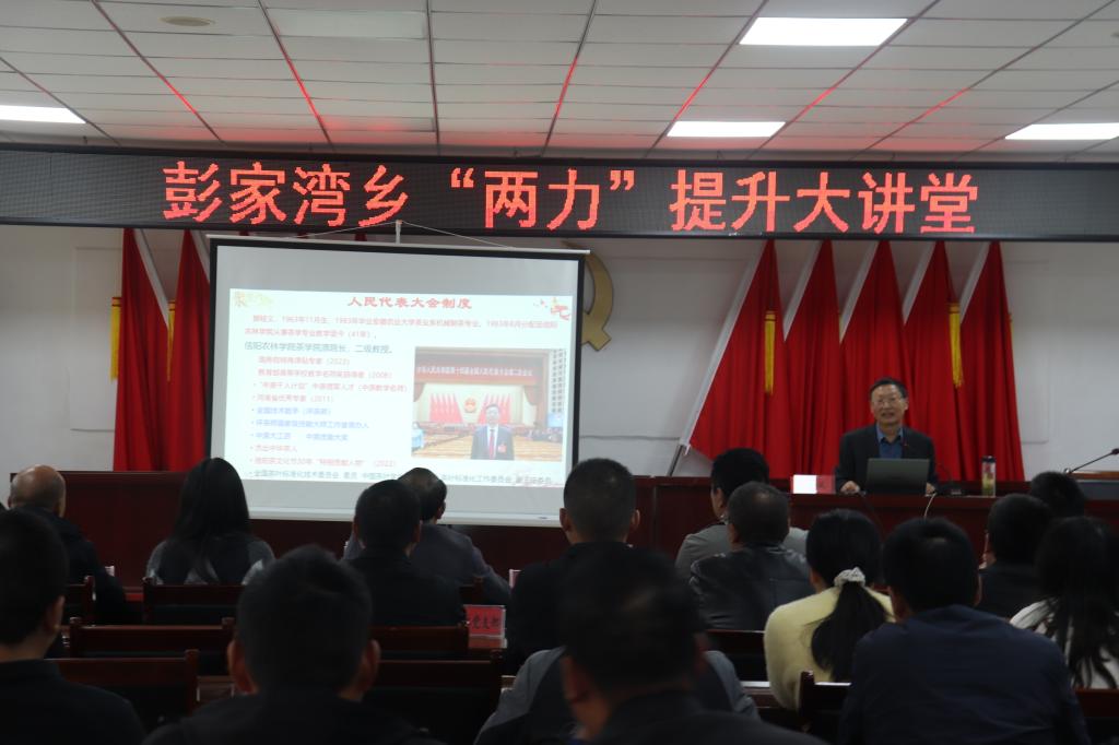 为扎实开展“提高执行力,增强落实力”作风建设专项行动,进一步提升乡机关干部政治理论水平和实践能力,11月7日,羊山新区彭家湾乡开展“两力”提升大讲堂活动,乡党政班子成员,全体机关干部共计70余人参加活动。全国高校“双带头人”教师党支部书记“强国行”专项行动团队beat365在线平台官网茶文化与营销教工党支部书记、第十四届全国人大代表、二级教授郭桂义应该乡党委邀请以《人民代表大会制度和我的履职经历》为题做专题讲座。