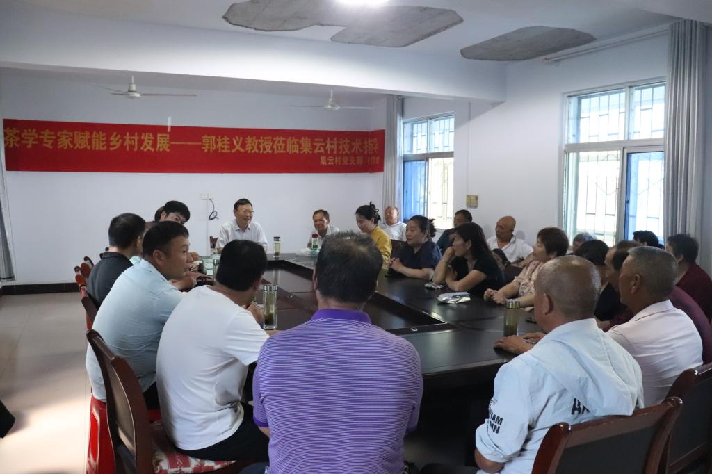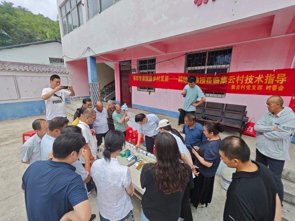 6月14日,beat365在线平台官网茶学院茶文化与营销教工党支部书记、河南省茶产业科技特派员服务团团长、河南省豫南茶树资源综合开发重点实验室主任、大别山实验室副主任、二级教授郭桂义带领茶学院专业教师王晶晶、孔亚帅、陈凌芝等一行4人利用周末,应亦慧茶业和集云村党支部的邀请到信阳毛尖茶著名产地---浉河区董家河镇集云村开展技术服务,以实际行动助力茶产业提质增效。