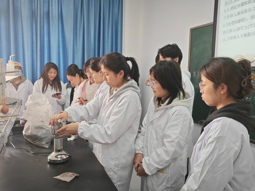 按照茶艺与茶文化专业人才培养方案要求和《茶叶化学》实训课程教学安排,茶艺与茶文化23班共计34名同学于本学期第10周(11.4-11.8)在1C405茶叶生物化学实验室和1C103茶叶分析检测实验室开展《茶叶化学》课程实训,实训由任课教师尹鹏、张向娜、王晶晶共同指导。