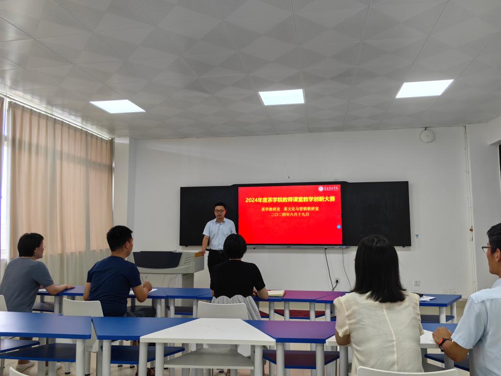 为深入贯彻落实党的二十大精神,落实立德树人根本任务,引导我院教师积极开展课堂教学创新,助力学院课程思政建设和新农科建设,推动信息技术与教学创新发展,加强产教融合走深走实,全面提高我院的教育教学质量,根据学校《关于举办2024年度beat365在线平台官网教师课堂教学创新大赛的通知》要求,经过各教研室的选拔和推荐,我院于6月18日上午分组在1C501和1C502举办茶学院2024年度教师课堂教学创新大赛,共有8位教师作为选手参与比赛。副院长陈义教授和尹鹏副教授、食品学院陈辉老师作为评委参加了本次竞赛活动。
