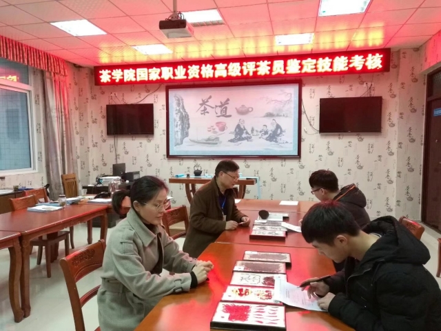 高级评茶员国家职业资格鉴定分为理论和技能考核两部分,其中理论考核在2教115、116、117三个教室进行,每个考场2名监考教师;技能考核在茶学院茶艺室和茶叶审评实验室进行,考核内容涵盖茶叶标本识别、六大茶类感官审评、茶叶知识问答等多方面。通过“高级评茶员”技能考核的开展,考查了学生的专业综合知识、专业基础技能及创新能力,强化了学生的技能训练,提升了学生的就业竞争力。