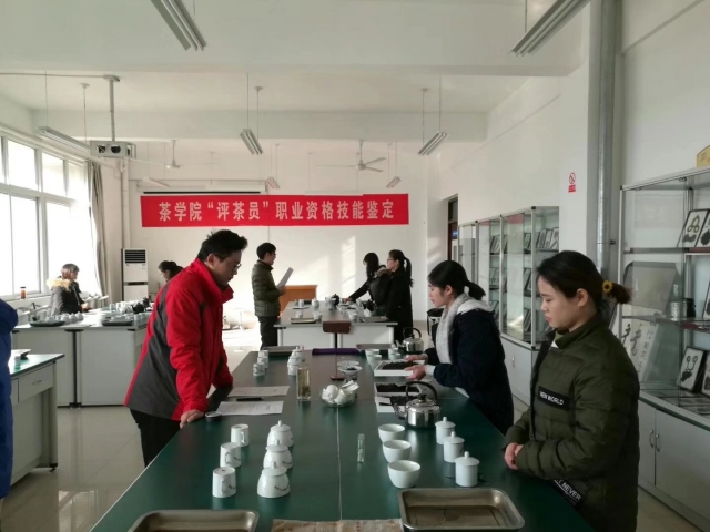 茶学院从2006年开始,面向在校茶学类专业学生开展国家职业资格“评茶员”“茶艺师”鉴定,2017年首次与信阳市人力资源与社会保障局联合开展国家职业资格“高级评茶员”鉴定。目前茶学院已成为河南省重要的国家职业资格评茶员、茶艺师理论、技能培训与鉴定基地。( 茶学院 张洁 刘佳 )