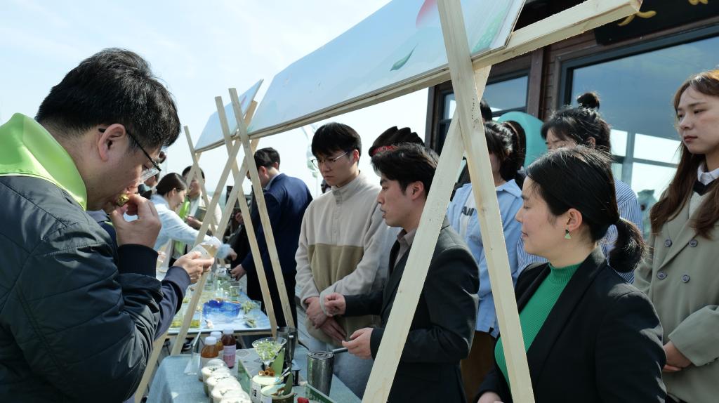 我院专任教师朱尧、苏丹与“食小茶”团队成员参与了本次活动,展示了各类结合信阳毛尖茶、信阳红茶的深加工产品。活动期间,各类领导现场品尝了“食小茶”的茶食品、茶饮品。