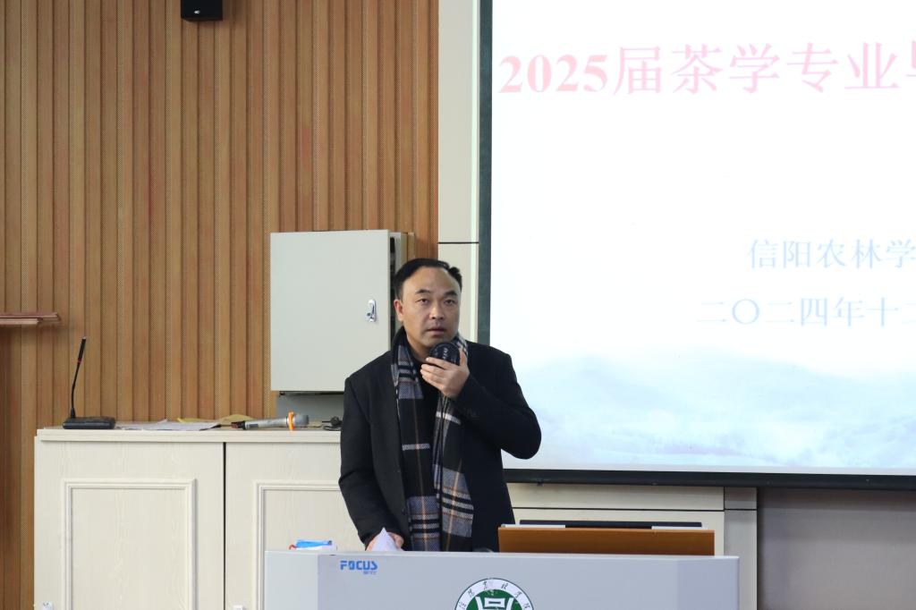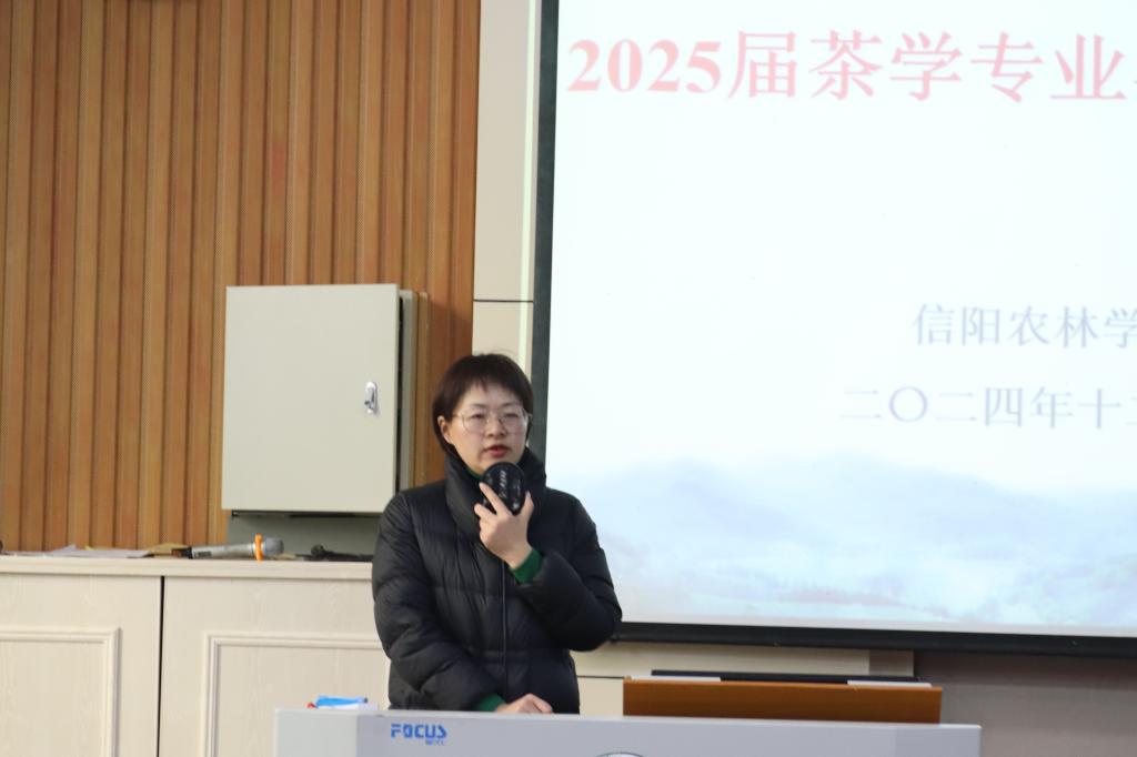 2024年12月26日,我院2025届茶学专业毕业实习动员会在一教E101成功举行。茶学院党总支书记王鹏、院长孙慕芳、党总支副书记兼辅导员王子浩、专职组织员及就业专员兼辅导员丁岚、茶学实验教学中心主任苏丹、教学秘书张向娜、2025届毕业生辅导员王晶晶、孔亚帅及2025届全体毕业生参加此次会议。会议由副院长尹鹏主持。