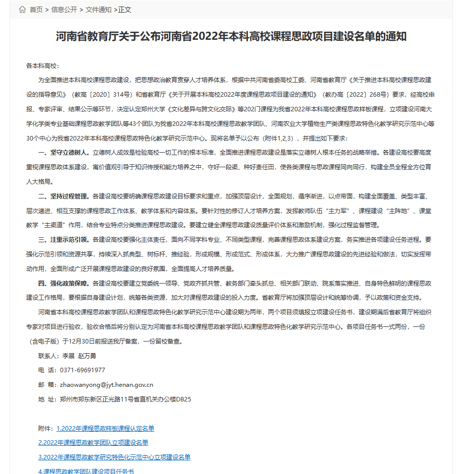 20221221日,河南省教育厅发文公布了河南省2022年本科高校课程思政项目建设名单(教高〔2022400号),根据中共河南省委高校工委、河南省教育厅《关于推进本科高校课程思政建设的指导意见》(教高〔2020314号)和省教育厅《关于开展本科高校2022年度课程思政项目建设的通知》(教办高〔2022268号)要求,经高校申报、专家评审、结果公示等环节,立项beat365在线平台官网茶学院以郭桂义教授为团队带头人的茶学课程思政教学团队为河南省2022年本科高校课程思政教学团队。