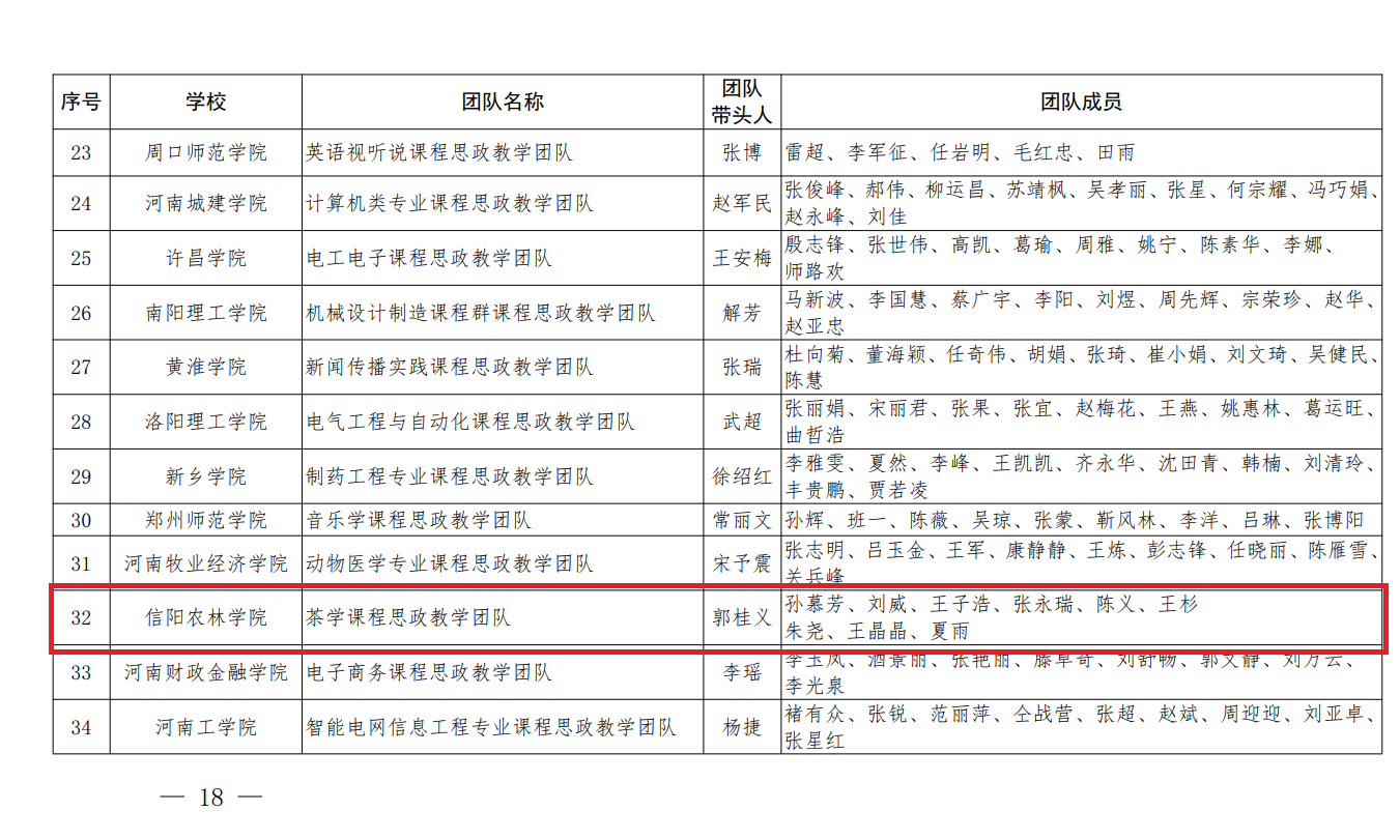 茶学课程思政教学团队立项为河南省2022年本科高校课程思政教学团队