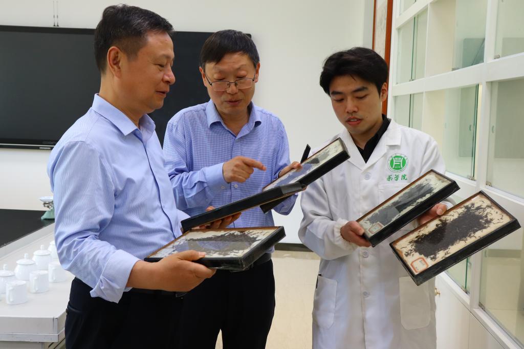 副校长赵聘在茶学院汇报了学校和茶学院在基础科学、技术创新、成果转化等方面的工作以及存在的主要问题及改进措施。