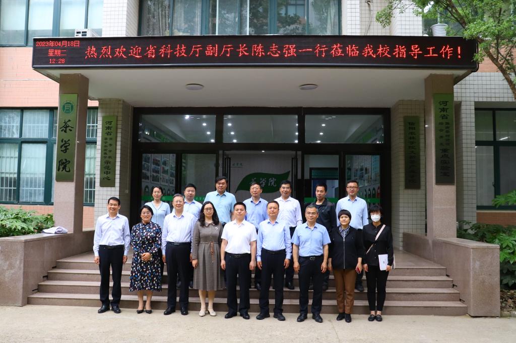418日上午,省科技厅党组成员、副厅长陈志强一行莅临茶学院调研指导河南省豫南茶树资源综合开发重点实验室(以下简称重点实验室)建设与运行工作。市委常委、副市长李俊,校党委副书记、工会主席王庆兵,副校长赵聘,其他相关部门负责同志参加调研活动。